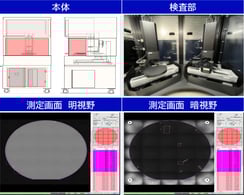 本装置は、ウエハ表裏面の異物、キズ、残渣の検出を目的とした表裏面検査機。